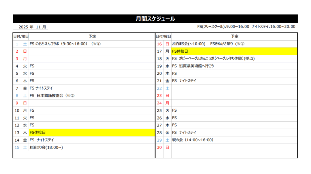 息子は毎月、フリースクールSinceの活動日とその内容を自らカレンダーへ記入し、参加する日を決めています。そして、Sinceへ行く日は、自分からおにぎりを作り、水筒などの準備をします。今までは、出かける準備は親任せのところが多く見られていたのですが、Sinceでともに活動する年上の子どもの姿を見ながら、自分でもできることは率先して取り組むようになってきました。学校でなくても、成長していく息子の姿を見て、好きな場所で、関係性を築いてきた仲間と過ごすことの大切さを、親としても日々感じています。