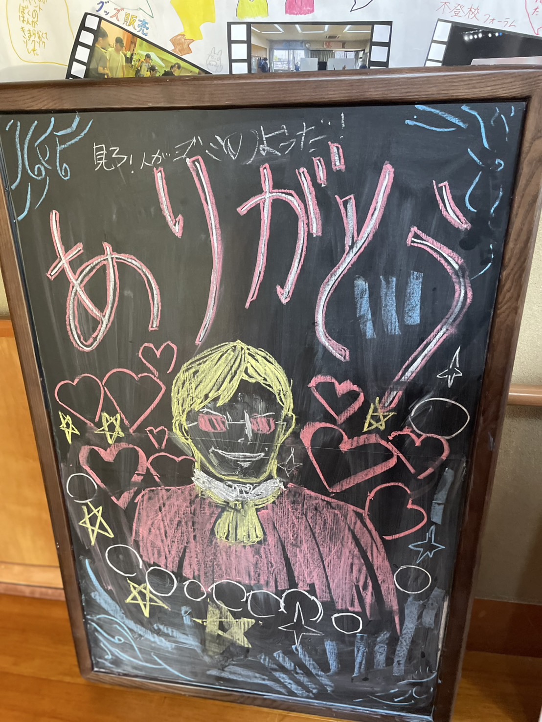 また、9月のナイトステイの際に、ワークショップとして、「かきくるカー」さんにお越しいただきチョークアート体験をみんなでしました!