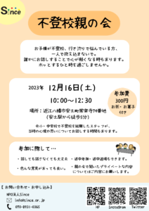 フリースクール活動場所(事務所)にて、13時∼15時の間で開催するつもりです。こちらもご興味のある方は是非ご参加ください。