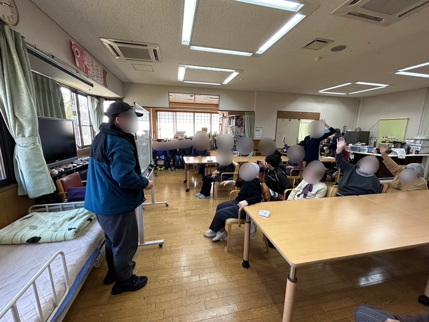 右往左往しながらも、内容がクイズと絵しりとりに決まり、それぞれのグループに分かれて利用者さんを楽しませるにはどうしたらいいのかを模索しながら当日を迎え、その場で修正をしながらも臨機応変にレクリエーションを遂行することができました。