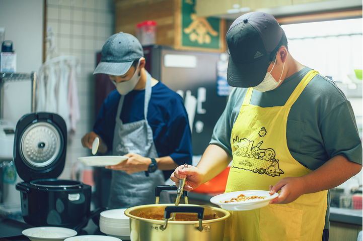 ナイトステイでは、子ども食堂を同時開催しています。参加者のみんなでカレーを作ったり、地域の方々がお鍋を作ってくれたり。毎回無料で、あたたかいご飯を食べることができます。